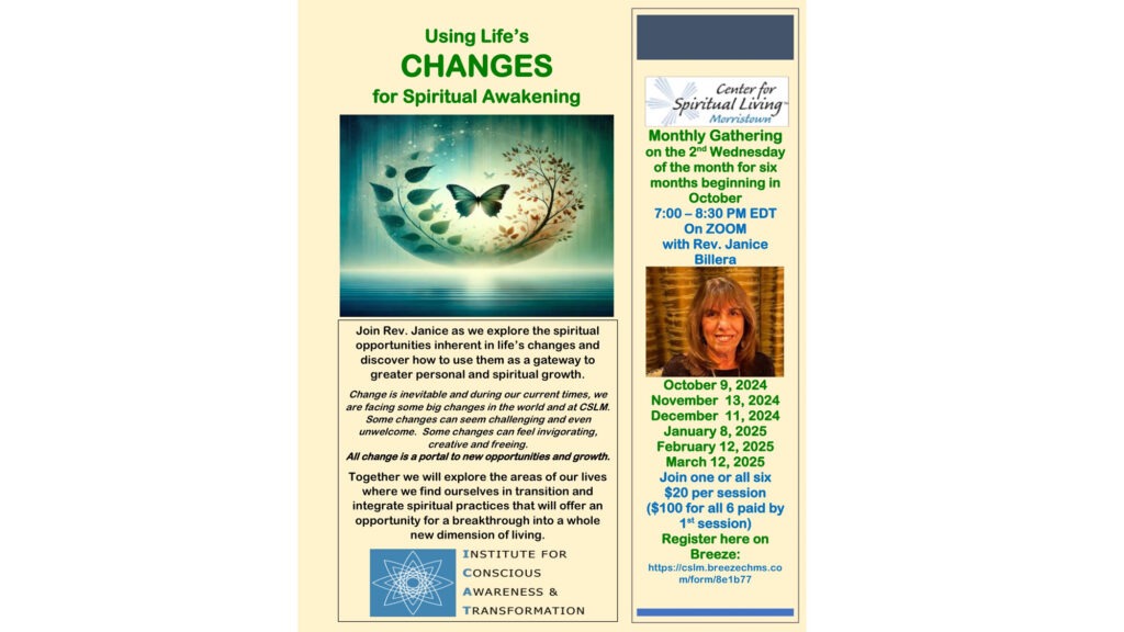 We explored the spiritual opportunities inherent in life’s changes and discovered how to use them as a gateway to greater personal and spiritual growth.